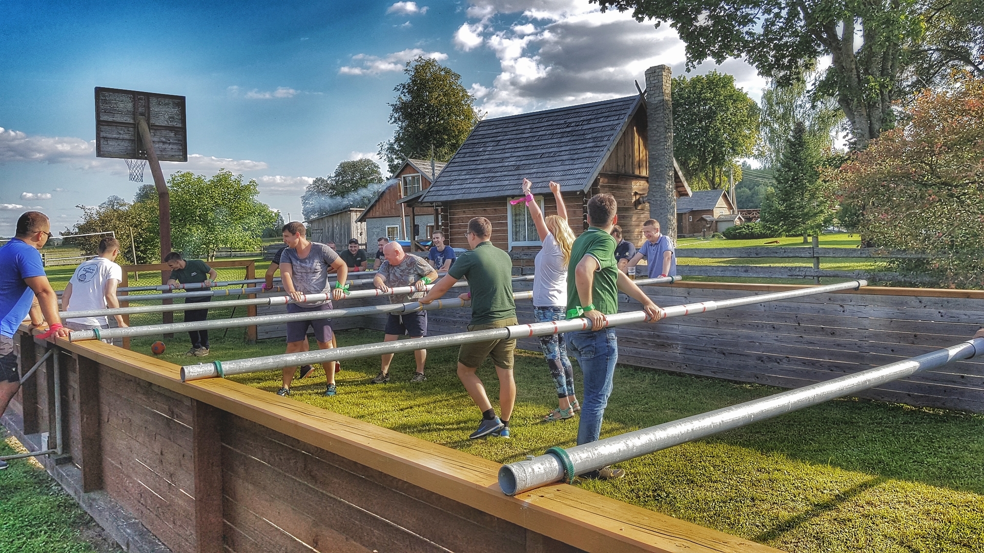 Erdvi ir išpuoselėta sodybos teritorija (5 ha) puikiai tinka rengti įvairius renginius ir pramogas gryname ore. Turime didelę lauko pavėsinę su skaidriais tentais, kurioje telpa 50 asmenų. Joje yra elektros įvadas ir apšvietimas. Sodybos svečiams galime pasiūlyti išskirtines pramogas, kurias patys organizuojame: „Gyvas stalo futbolas“, Footgolfas, Laukystos golfas, šaudymas iš lankų ir arbaletų į 3D žvėrių taikinius, Kubb.