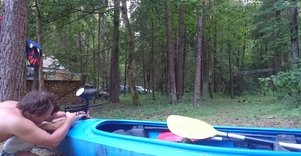 Egzotiškai apsirengęs sportiškas vandenis išleis merginas į žygį tik joms priėmus specialią priesaiką. Trukmė priklauso nuo pasirinkto maršruto. Kaina - kaip įprasto baidarių žygio.