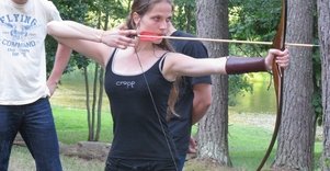 Pasirodo nėra viskas taip paprasta, kaip kad rodo per filmą Robinas Hudas... Įtempti lanką reikia pastangų. O tiksliai pataikyti - dar ir sėkmės, nes profesionalumo iš pirmo karto tikėtis neverta:). Tačiau treniruotis verta, nes santuokoje šaudyti privalėsi taikliau...