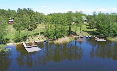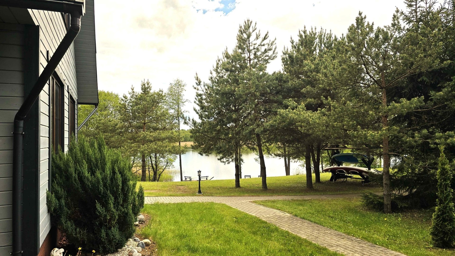 Šiuolaikiška, moderni sodyba įsikūrusi šalia pušyno, prie vieno švariausių Lietuvoje, Akmenių ežero (iki ežero 45 m).
