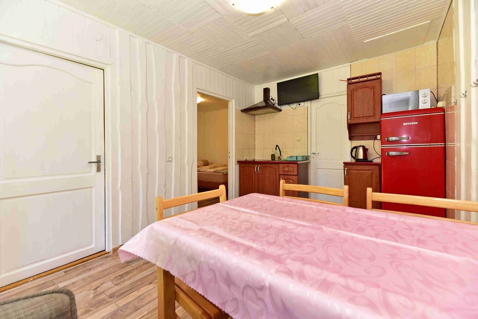 Sodyba „Akmenėlis“ – puiki vieta ramiam poilsiui. Čia rasite jaukius ir patogius dviviečius bei triviečius kambarius su visais patogumais. Kiekviename kambaryje yra šiltas vanduo, WC ir dušas, virtuvė su būtinu inventoriumi ir indais. Norintiems didesnio komforto šeimininkai gali pasiūlyti atskirus namelius, kurie turi atskirą teritoriją su pavėsine ar terasa ir šašlykine, šalia esančiomis supynėmis ir vaizdu į ežerą. Tokių namelių yra 6.