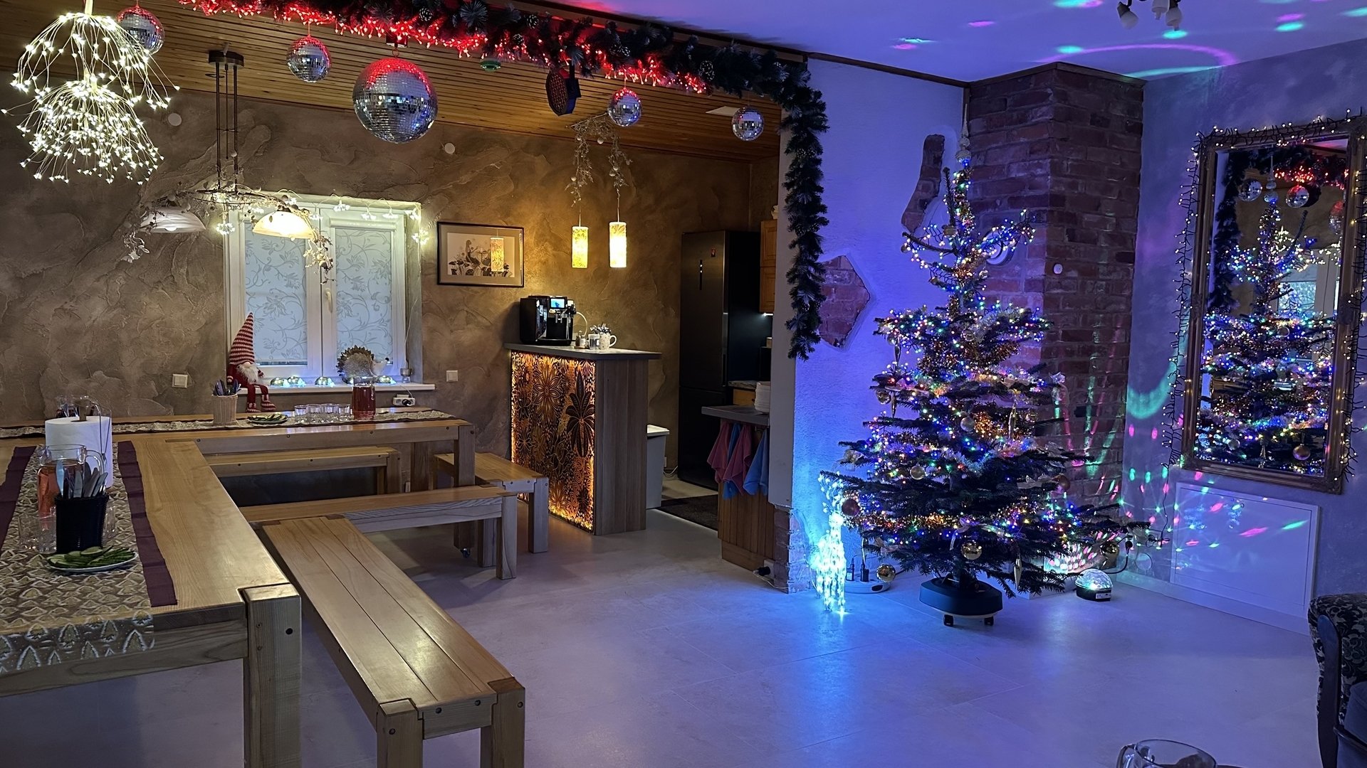 - internetas WiFi - 5G pastiprintas ryšys, didelis TV, muzikos aparatūra, šviesos lazeriukai, romantiškas apšvietimas