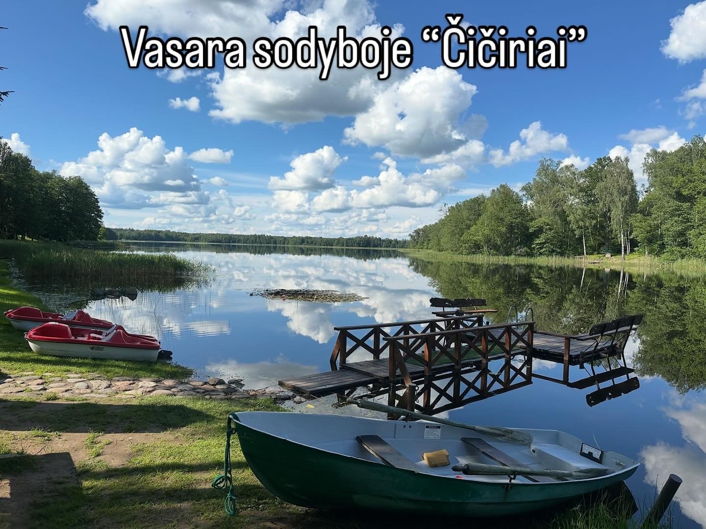 Pasijausite lyg būtumėte savo namų viloje ant ežero kranto – didelis erdvus sodybos plotas aptvertas tvora, visada ir visur nupjauta žolytė, pušelės ir dekoratyviniai medeliai, visi kampai sutvarkyti ir viskas apgalvota vaikams ir suaugusiems – karstyklės, batutas, mini golfas, Šreko namelis, šezlongai, minkštieji lauko poilsio baldai, alpinizmo sienelė, paplūdimys, terasa.. visas kompleksas malonių emocijų ir suaugusiems ir vaikams – po vienu sodybos „Čičiriai“ dangumi...