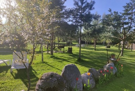 - neklojame trinkelėmis terasų, praėjimų ir takų. Takus darome iš plytelių dūžio, kad tarpuose auganti žolė kuo labiau jas paslėptų. Manome, kad mūsų lankytojai yra ne tie, kurie bijo susitepti kojas, kurių kulniukai sminga į dirvą, o tie, kurie atvažiuoja pailsėti, atsipalaiduoti ir pabūti gamtoje, galvodami ne kaip atrodo, o kaip jaučiasi.