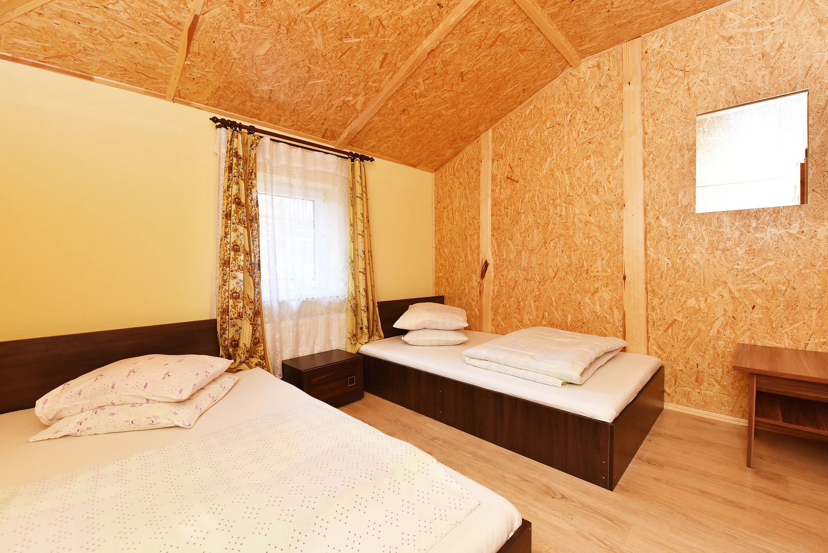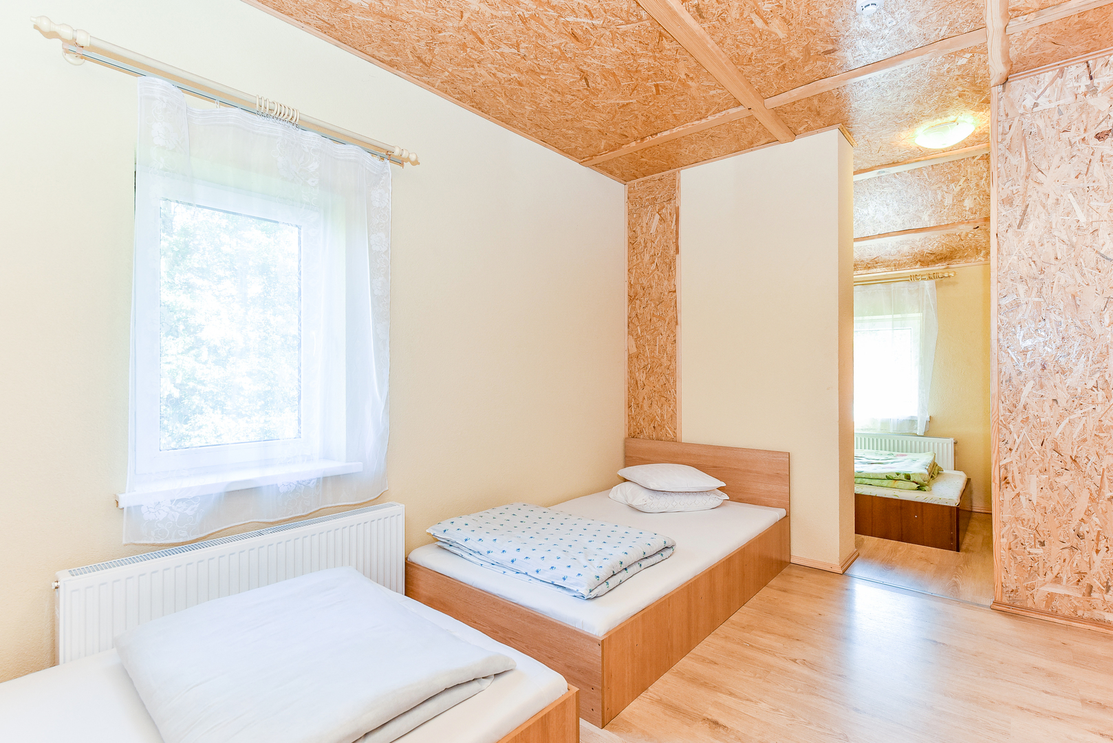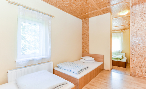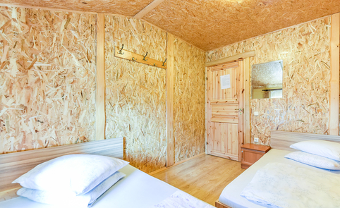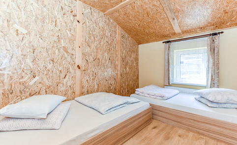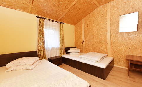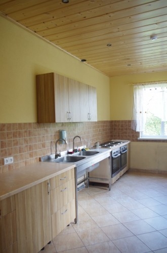 Sodybos pastato 1-ame aukšte – erdvi salė, (ekranas multimedijai), virtuvė su įranga, WC, dušai, pirtis. 2-ame aukšte – jaunųjų miegamasis ir 9 keturviečiai kambariai. Vienu metu sodyboje vasarą gali nakvoti 60 žmonių, o salėje švęsti šventes – iki 80 žmonių.