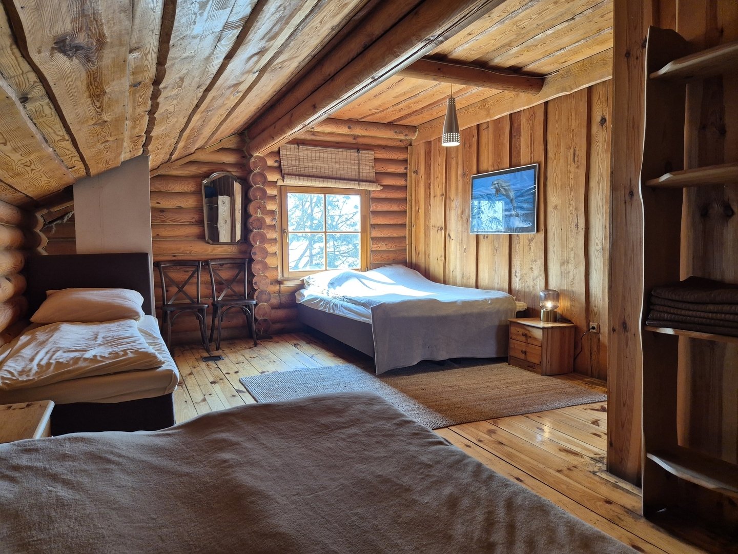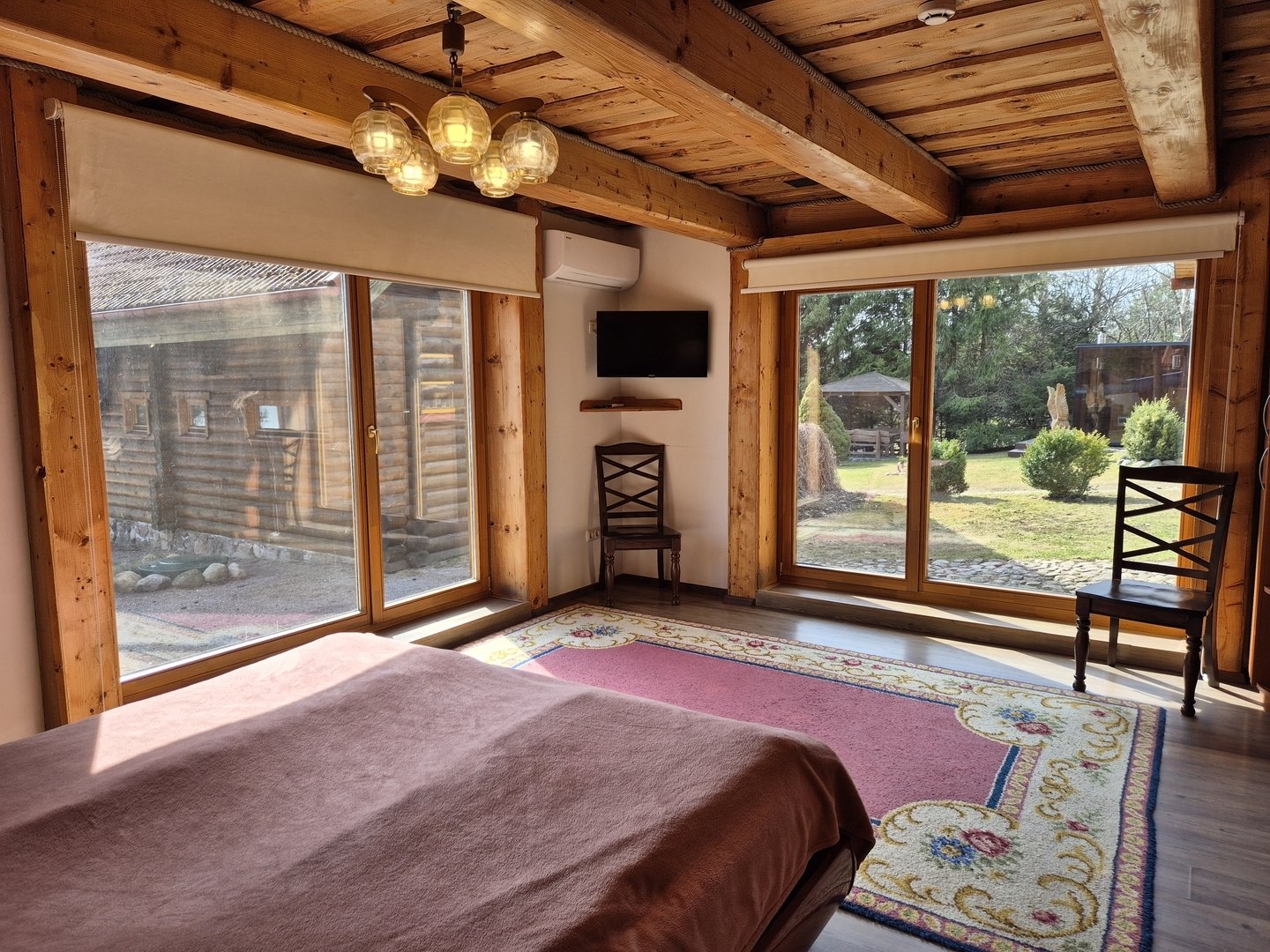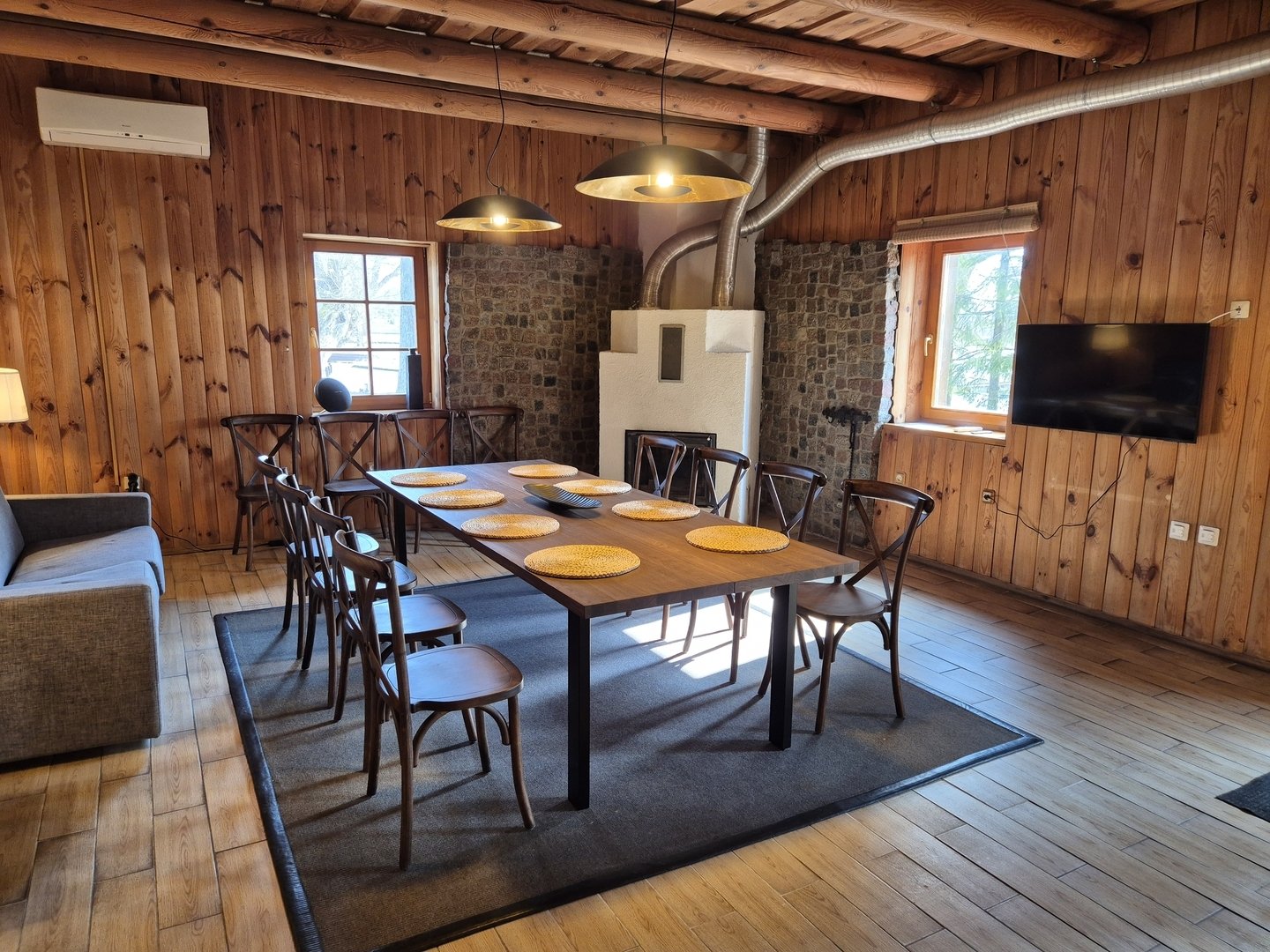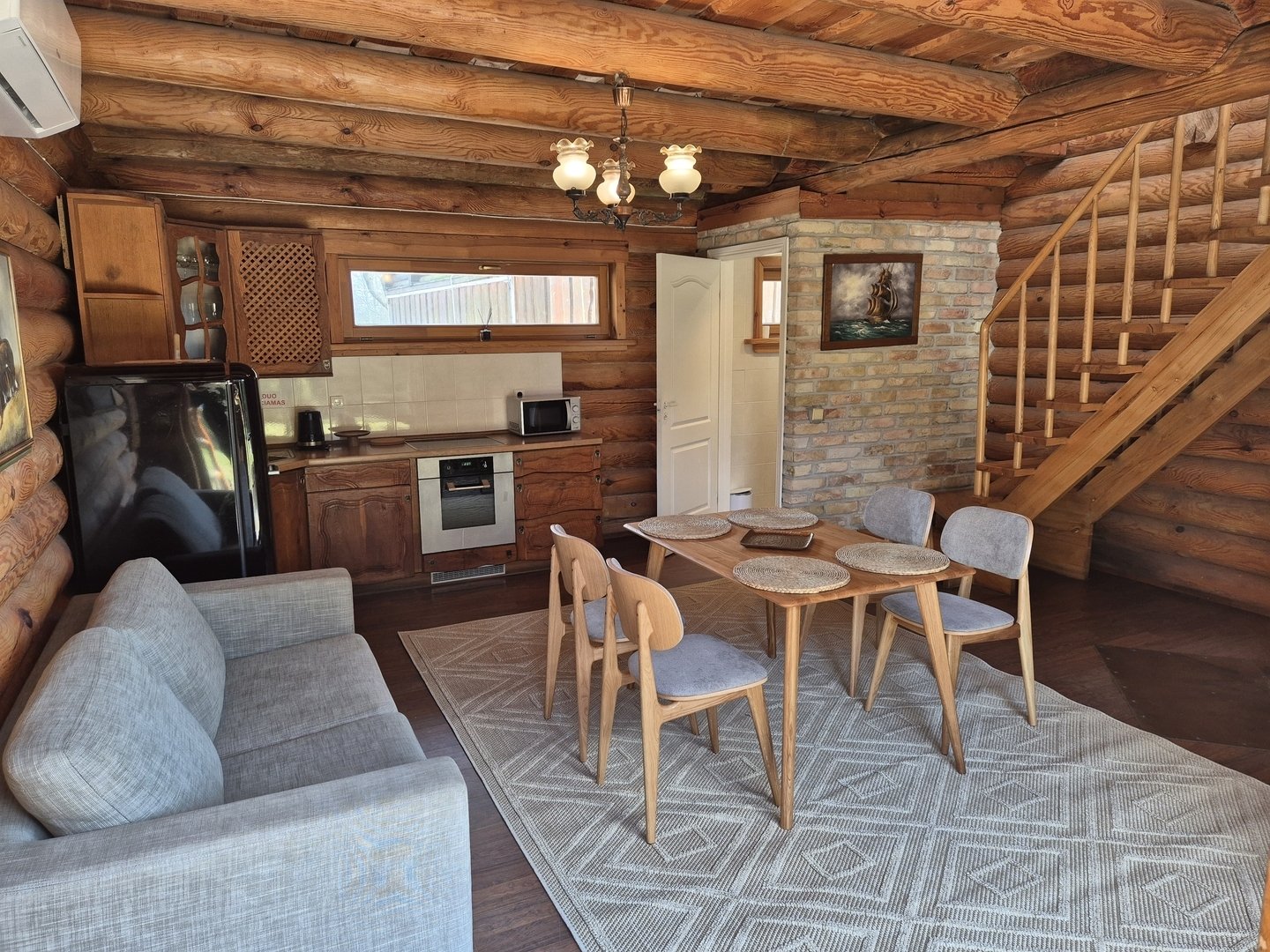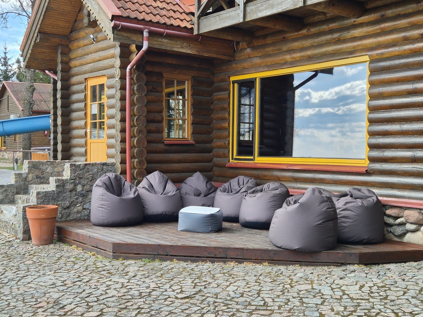 Sodyboje pastatyti aštuoni rąstiniai namai, turintys modernią vidaus įrangą ir visus patogumus.
