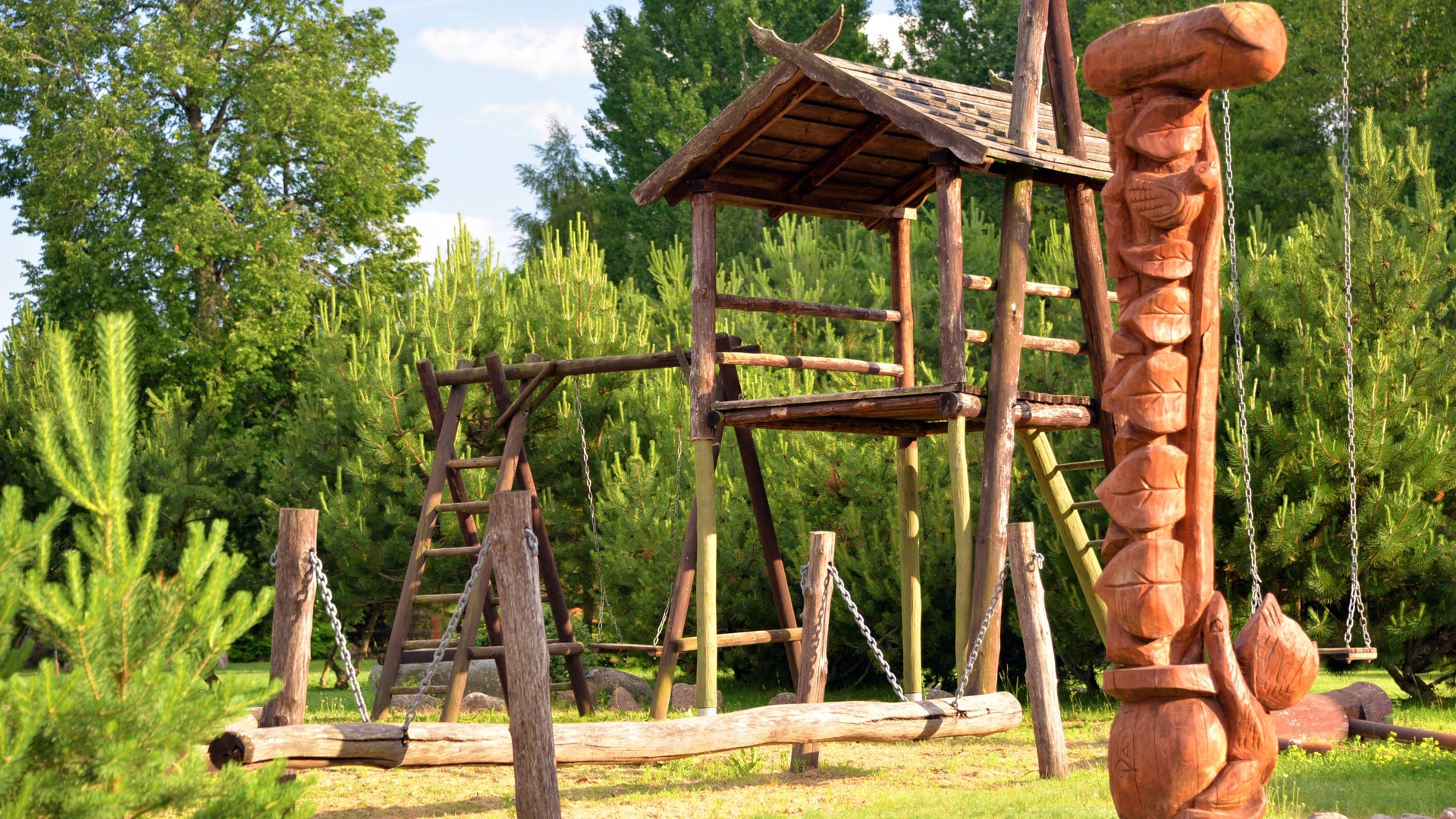 Sodyboje yra sporto aikštelės: papludimio tinklinio ir krepšinio/teniso, vaikų žaidimo aikštelė, pasivaikščioti po mišką galima, neišeinant iš sodybai priklausančios teritorijos, įrengta mašinų stovėjimo aikštelė.