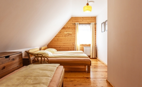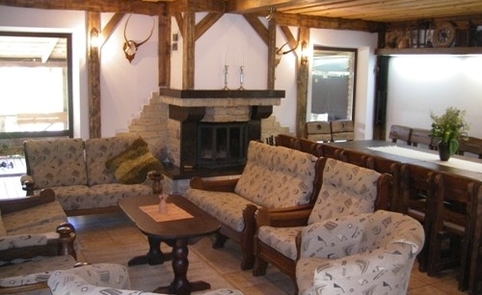 Pagrindiniame senų laikų dvasios pastate poilsiautojams skirti keturi numeriai su 5 jaukiais kambariais (2+2)+ 3 + 3 + (4 + 2) su patogumais ir 14 + (2) miegamų vietų, renginiams skirta židinio – pokylių salė iki 35 asmenų grupei, didelė terasa aplink salę su lauko riedulių židiniu, minibaru, antro aukšto hole TV, pulo stalas, bibliotekėlė, šachmatai ir kiti stalo žaidimai.
