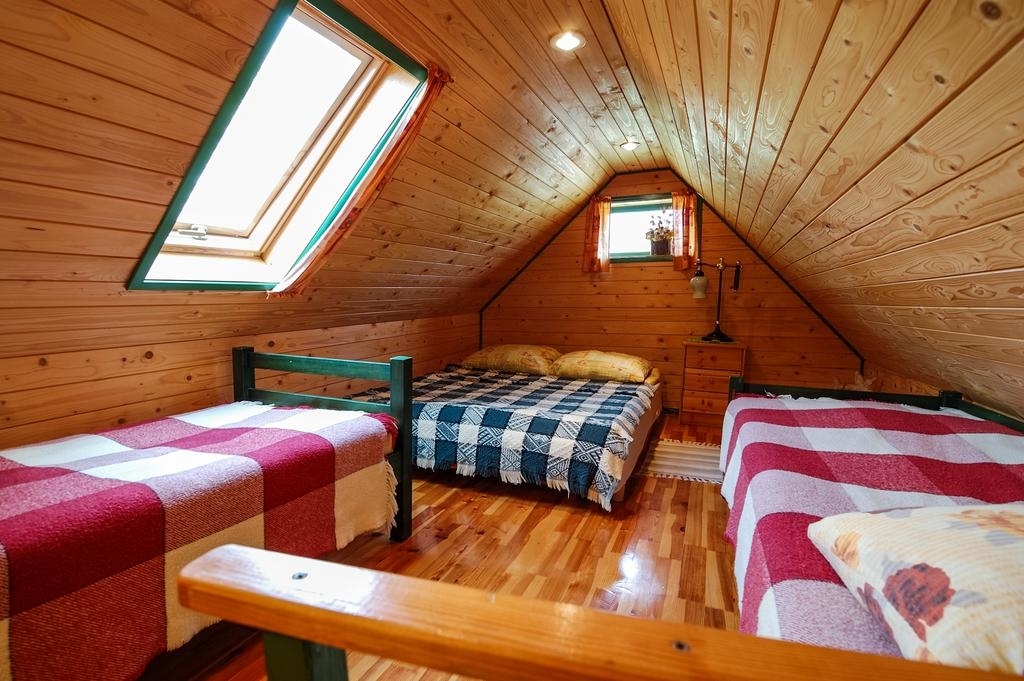 Hütte Žiogeliai rasite jaukiai įrengtą klėtelė su keturiomis miegamomis vietomis. Esant reikalui, galime pristatyti dar vieną sudedamą lovą. Galima apsistoti su palapine ar kemperiu. Klėtelėje rasite virtuvėlę su šaldytuvu ir visais reikiamais rakandais ir baziniais dalykais kaip druska ir kava, valgomąjį stalą ir nedidelę bibliotekėlę. Šalia pat - patogi pavėsinė, karštas dušas bei lauko wc.