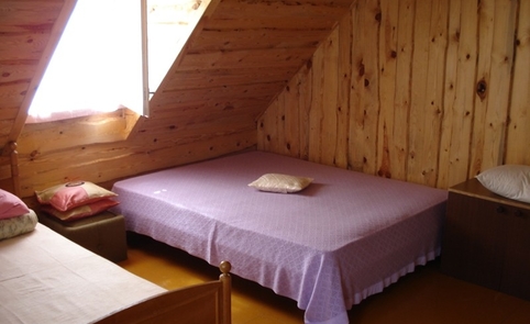Pirtis su patalpa pasisėdėjimui iki 12 žmonių. Virš pirties kambarys, 4 miegamos vietos, lauko WC.